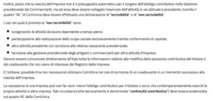 Per dimostrare questo con delle prove, reputo utile riportarti un “pezzo” delle iscrizioni pubbliche del manuale di ComUnica in cui si mostra che ci sono dei requisiti che bisogna compilare mentre si predispone la pratica online per far evitare i contributi Inps al socio operativo.